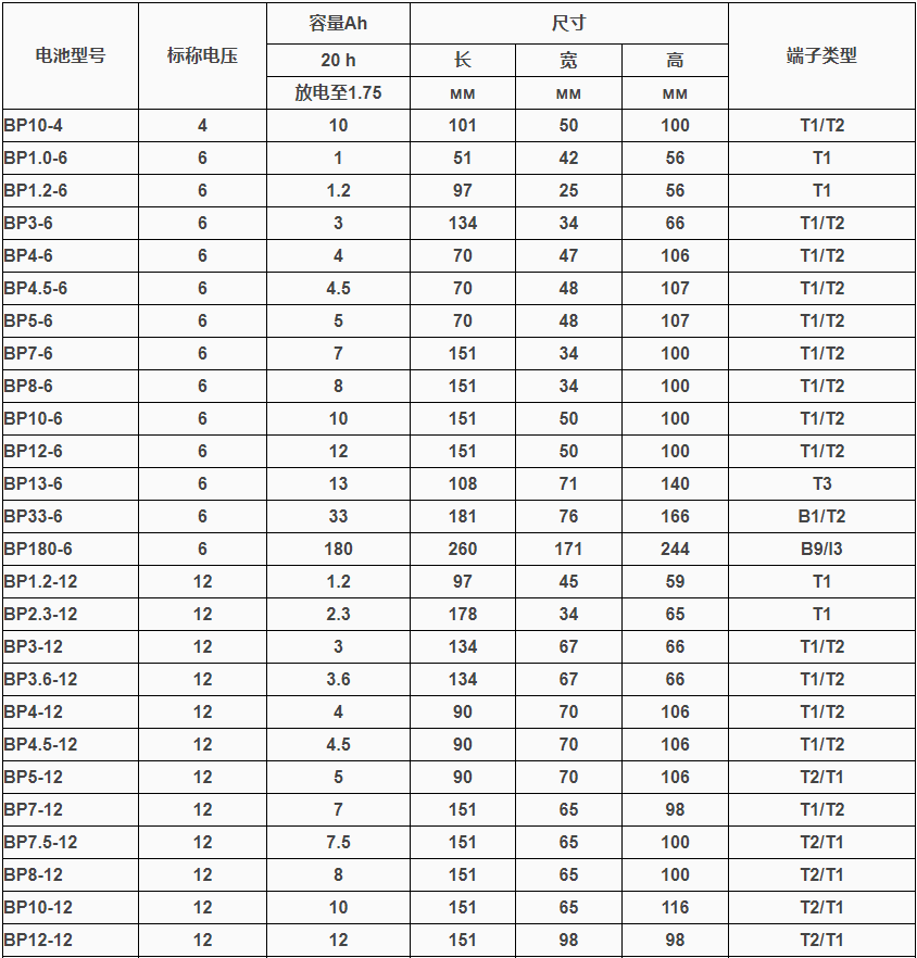 台湾美美蓄电池(B.B.BATTERY),全新原厂现货!支持正品,杜绝仿冒!20多年来对质量理想的不断追求,美美电池已成功积累了广大客户的好评和全球信誉,持续秉承强大的开发与生产能力,为全球所有客户提供最有价值的铅酸蓄电池产品和服务。 BB蓄电池产品特点:1、蓄电池采用铅钙六元合金板栅,涂膏成型的电极板,使得蓄电池大容量,长寿命;2、铅锡多元合金集流排,使得蓄电池内阻小,耐腐蚀,能经受长期浮充使用;3、蓄电池采用先进的AGM隔板,金属吸收电解质,不留游离液体,顺利完成气体阴极吸收,可任意位置放置使用;4、蓄电池采用硅氟橡胶密封安全帽,安全防爆,无腐蚀液体泄露;5、蓄电池采用ABS塑料外壳,牢固耐老化;6、蓄电池端子为镀铜,接触电阻小,不易生锈;7、蓄电池分析电解质,自放电小。 ![]() ![]() |