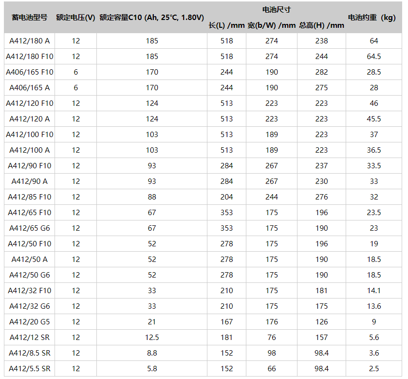 产品容量:5.5Ah-180Ah