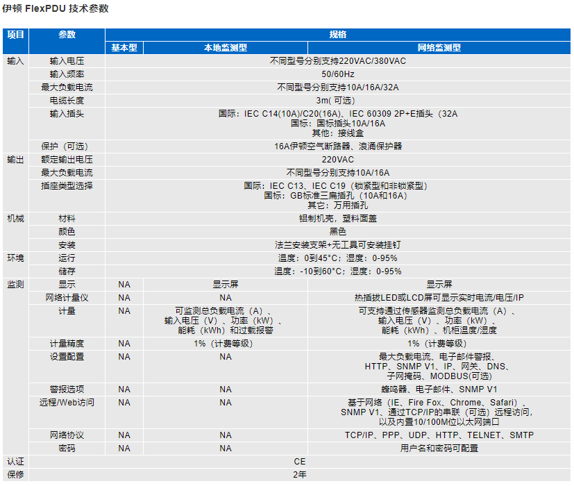 伊顿FlexPDU 有多种输出插座可选,能连接到各种设备。 |