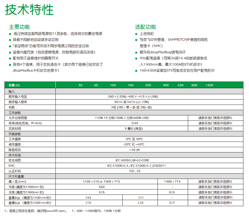 STS静态转换开关针对电源之间进行自动转换的真正冗余性和非凡的高可靠性